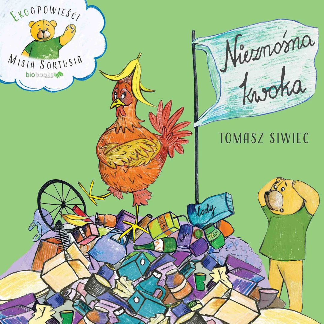 Chciałbym, abyście wiedzieli, że chronimy skarby przyrody, gdy zbieramy osobno, czyli segregujemy, papier, plastik i metale, szkło, a także resztki kuchenne. Nowe rzeczy zostaną wyprodukowane nie z tych cennych skarbów, lecz z naszych śmieci. Świetnie, że nieznośna kwoka zmieniła swoje zachowanie!